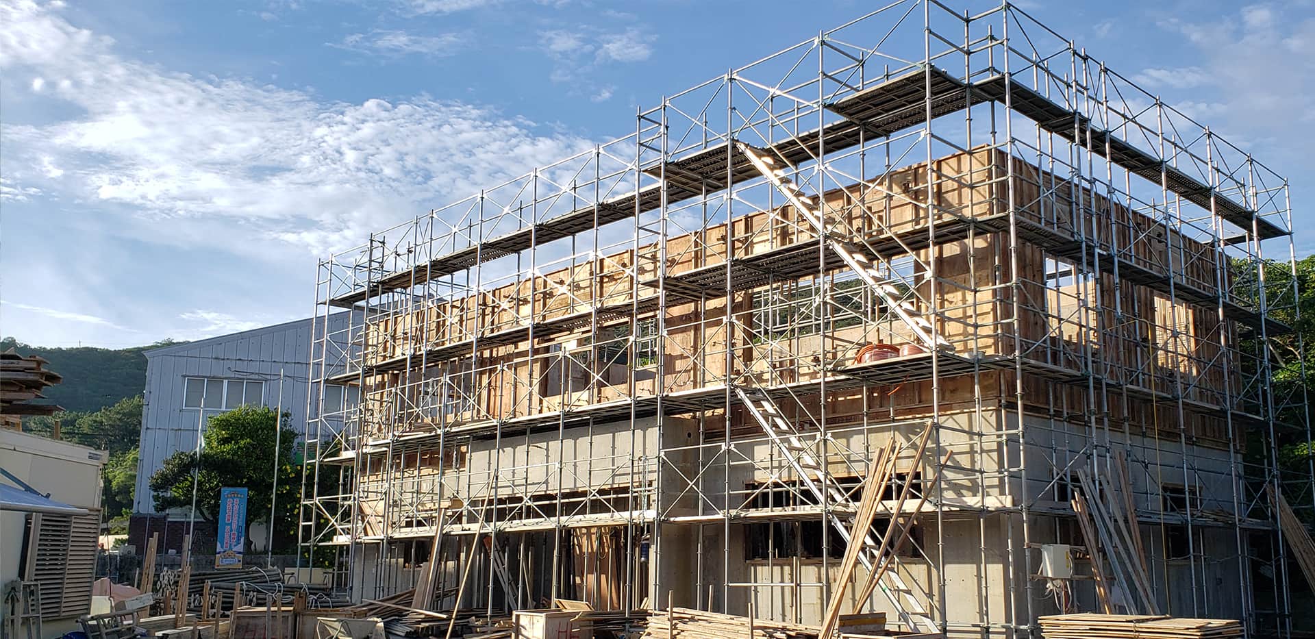 階高1900mmのIQ足場システムを揃えて、安全な作業環境と効率アップを実現。